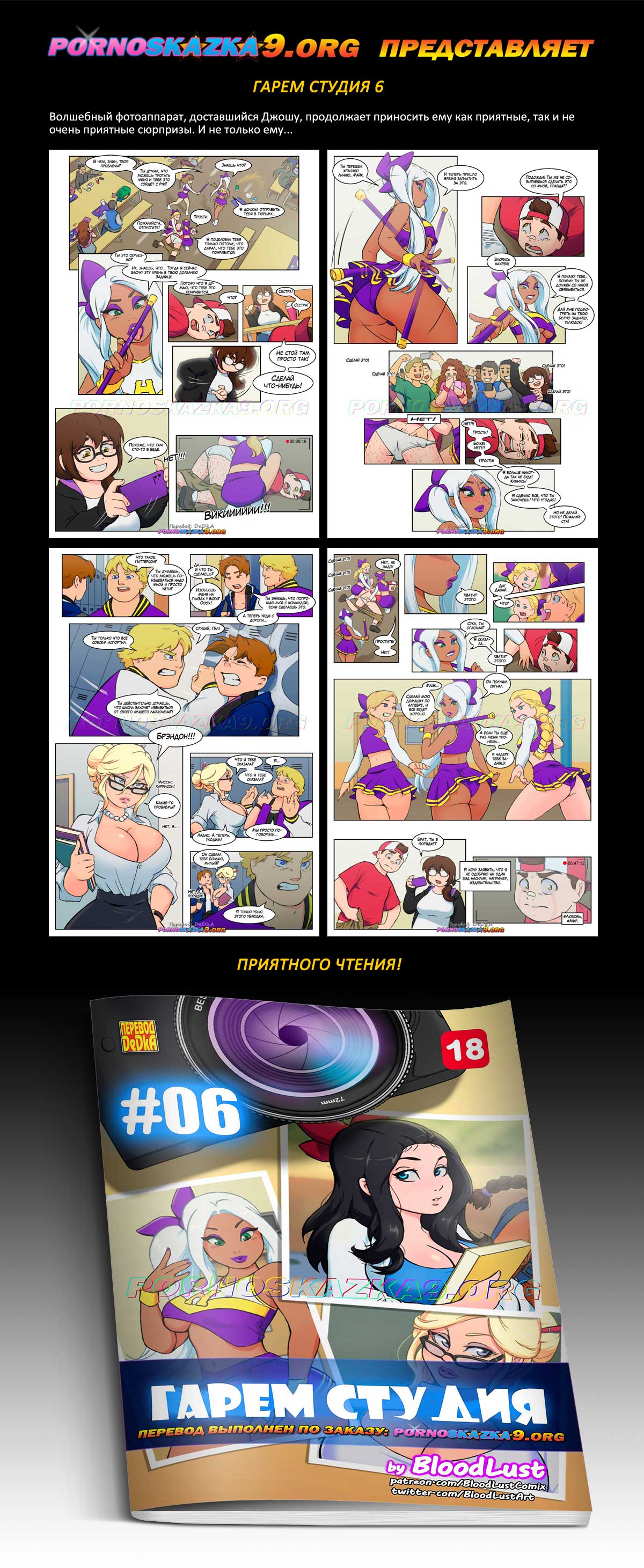 Порно комикс «Гарем студия. Часть 6». Волшебный фотоаппарат, доставшийся Джошу, продолжает приносить ему как приятные, так и не очень приятные сюрпризы. И не только ему…